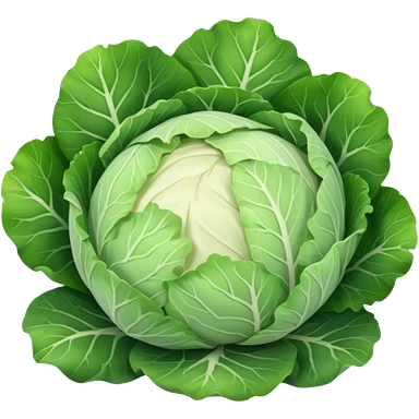 round cabbage, whole, smooth tightly packed leaves, pale green to white, firm spherical head, gentle veining, slight gloss, soft lighting, emoji scale emoji