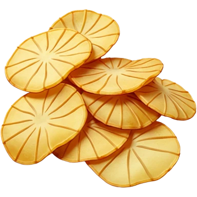 a pile of white prawn crackers shaped like potato chips, airy and puffy, realistic and true to life, emoji style, no faces or expressions emoji