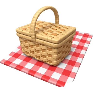 Wicker Picnic basket on a red and white plaid blanket emoji
