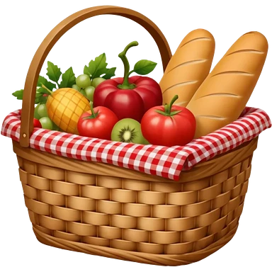 wicker basket with picnic cloth in it emoji