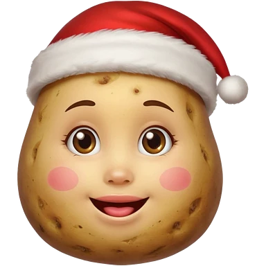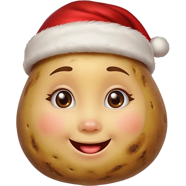Potato with a happy girl face and a Santa Christmas hat on emoji