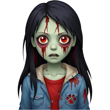 Garota zumbi cabelo longo preto, mevhas vermelhas nas laterais na frente da cabeça emoji