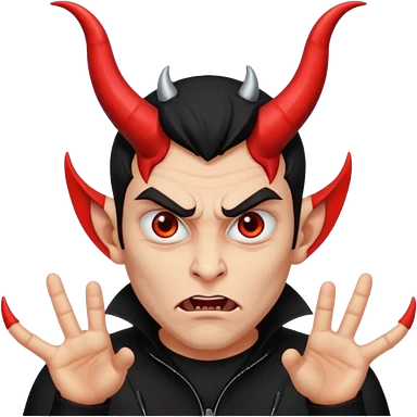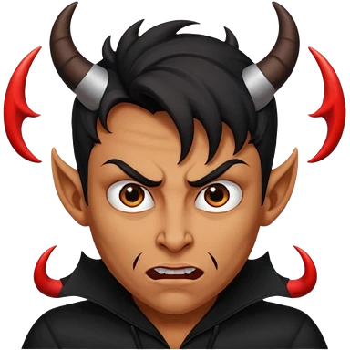 The guy looks at you with contempt and disgust, rolls his eyes, and wears black clothes and has devil horns. emoji
