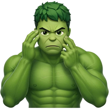 Create a man in a Hulk costume with his hand on his forehead and eyes closed (disappointment) emoji