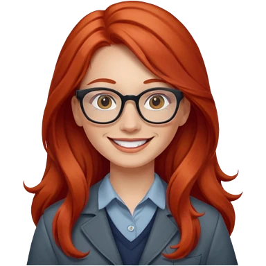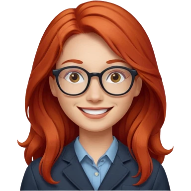 Profesora joven de fotografía, sonrriente cabello rojizo y de pelo largo emoji