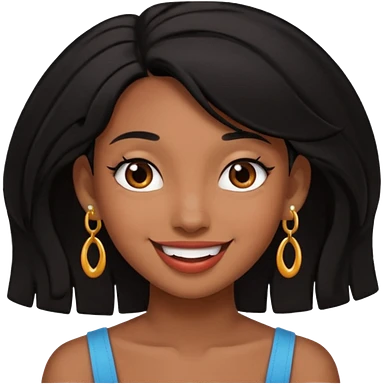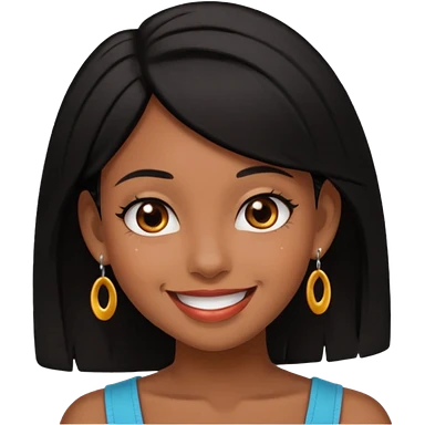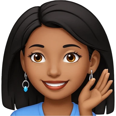 Pierced ear emoji with flirty expression brown skin black hair emoji