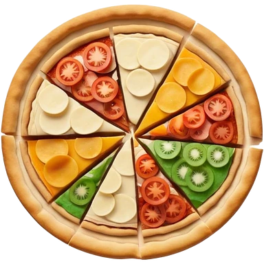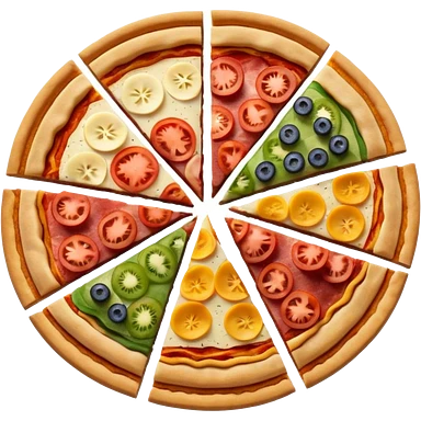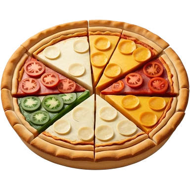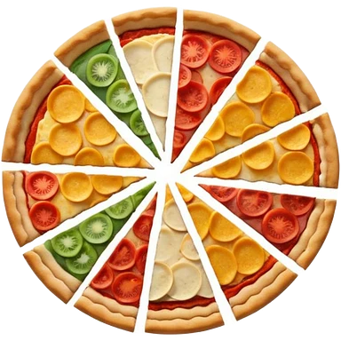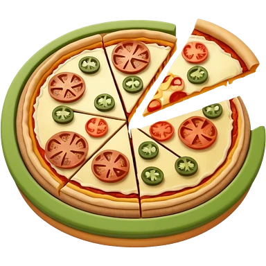 3d pie chart whith pizza as base and different colored unequal slices emoji