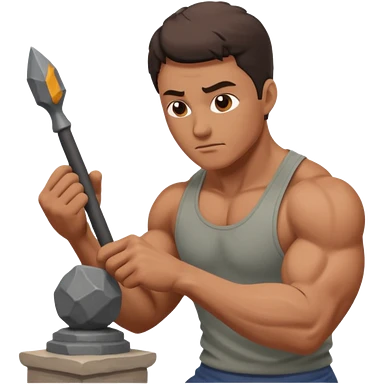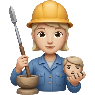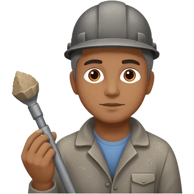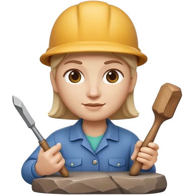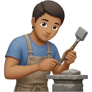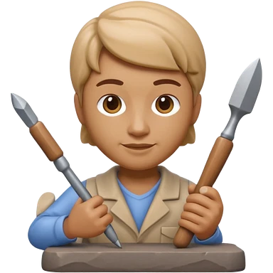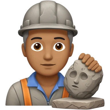 Apple Memoji-style 3D emoji of a sculptor with a small statue and chisel, smooth gradients, rounded edges, no background.during sculpting rock emoji