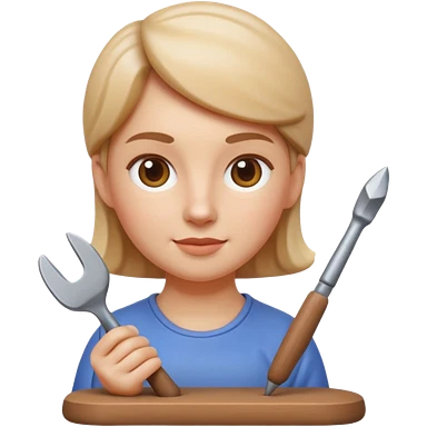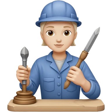 Apple Memoji-style 3D emoji of a sculptor with a small statue and chisel, smooth gradients, rounded edges, no background.during sculpting emoji