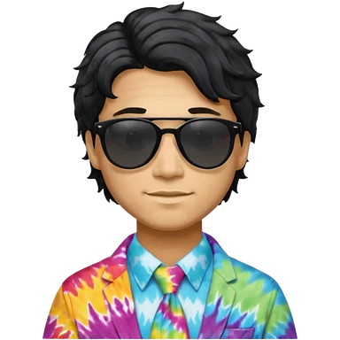 man in hippies clothes, wearing sunglasses, black wavy hair emoji