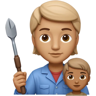 Apple Memoji-style 3D emoji of a sculptor with a small statue and chisel, smooth gradients, rounded edges, no background.during sculting emoji