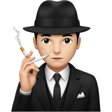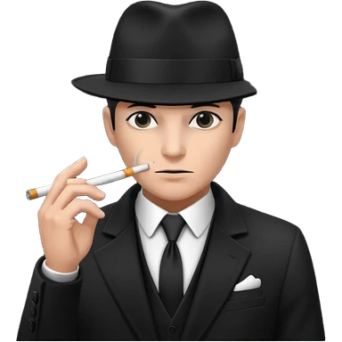 Syndicate agent in the future, with a black suit and mafia looking hat, smoking a cig emoji