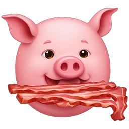A big bad pig in a suit with a man in a hoodie holding bacon emoji
