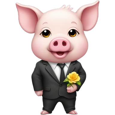 a cute pig wearing wearing a suit and holds a flower then acts like he wants to kiss yiu emoji