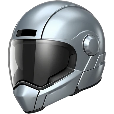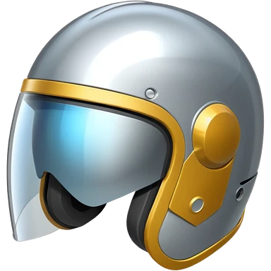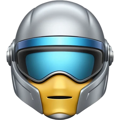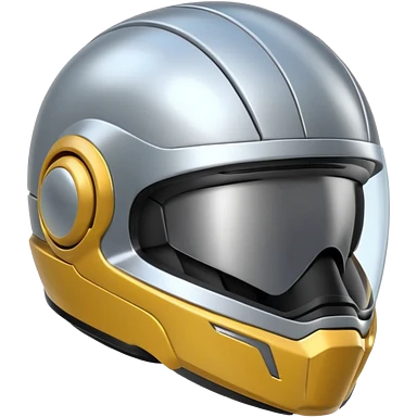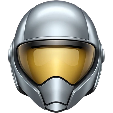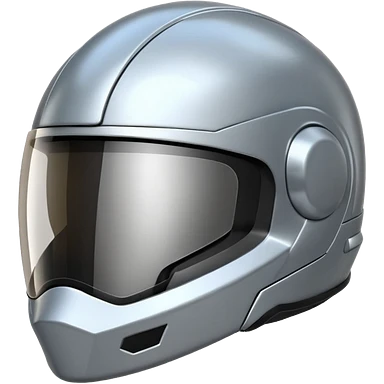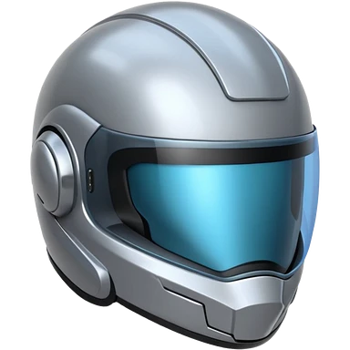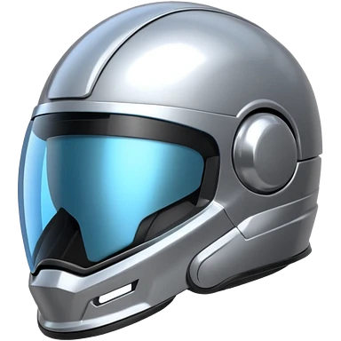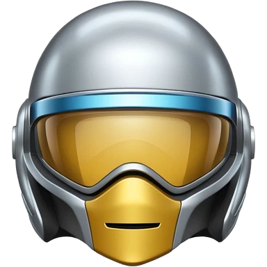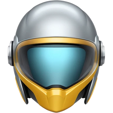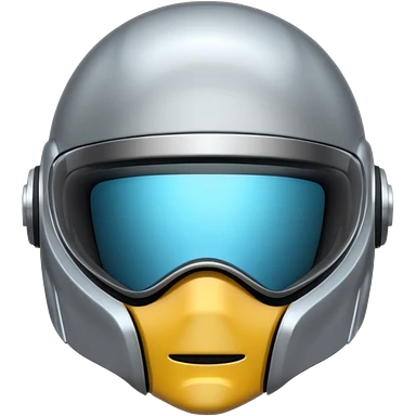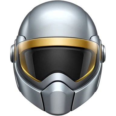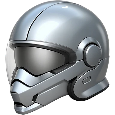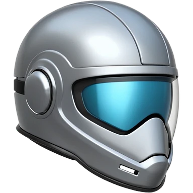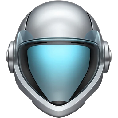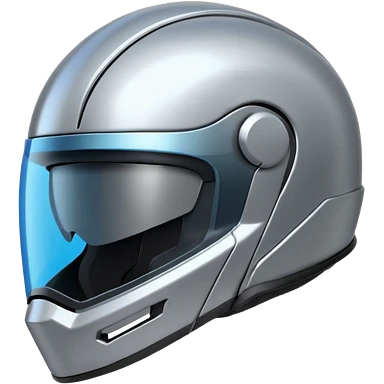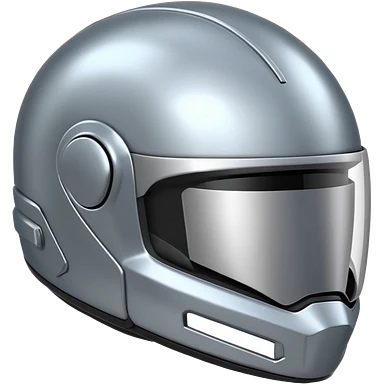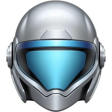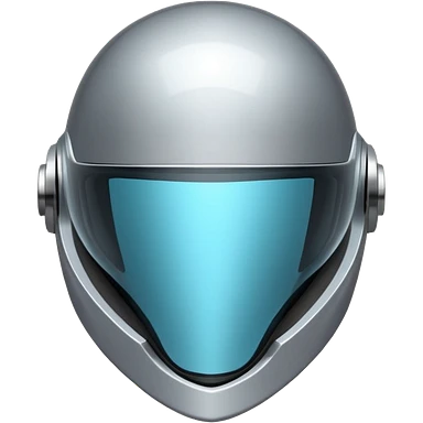 A futuristic helmet emoji made of silver chrome, smooth aerodynamic shape, minimal visor detail, reflective metallic surface, sci-fi aesthetic, iOS emoji style, centered on clean white background emoji