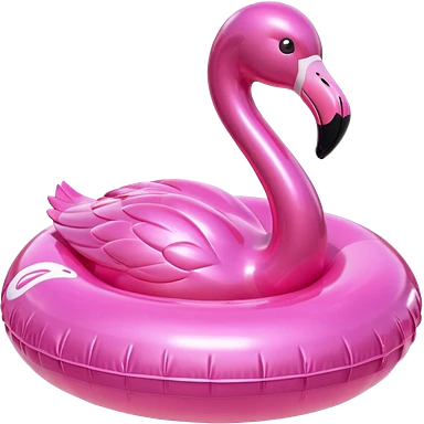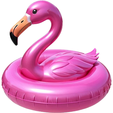 3D render of Pool Flamingo made of shiny inflatable vinyl, visible seam lines, air valve, highly reflective plastic texture, pool toy aesthetic, Apple emoji style, isolated on white background --v 6.0 emoji