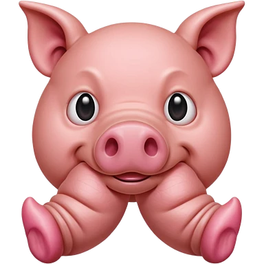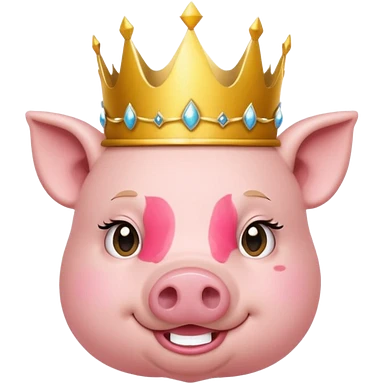 girl with blue eyes and black hair. She is laughing at her pig. Her pig is trying to kiss her emoji