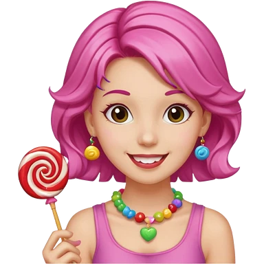 CHARACTER CARTOON WITH HUMAN BODY AND LOLLIPOP INSTEAD OF HEAD, WOMAN emoji