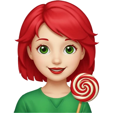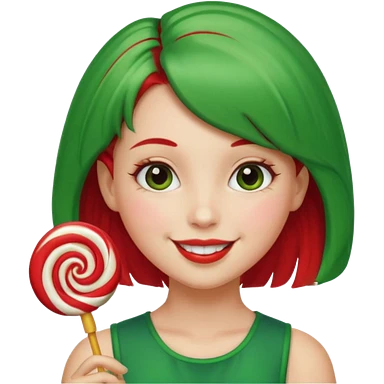 very pretty candy shop girl face with lollipop hair red and green combined emoji