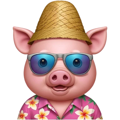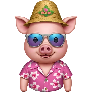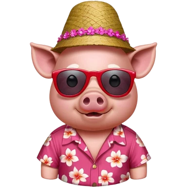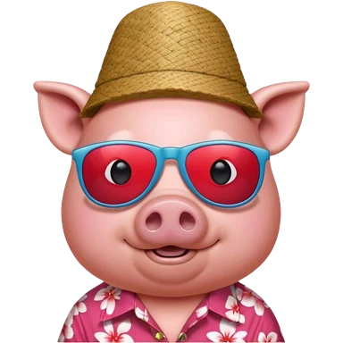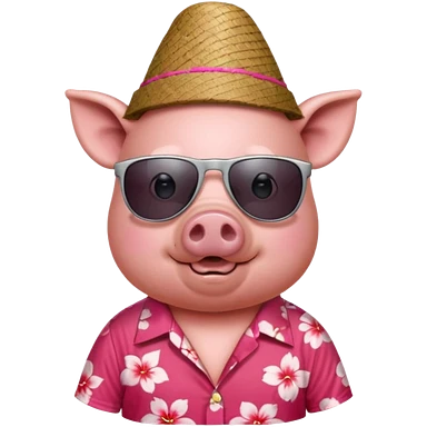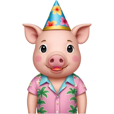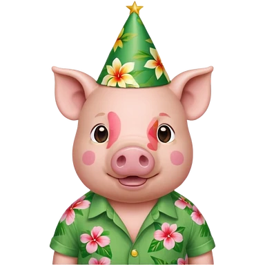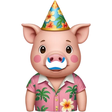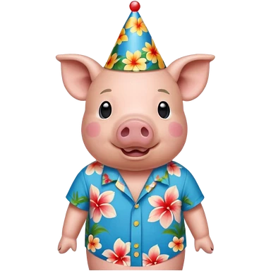 Pig with aloha shirt, birthday hat emoji | AI Emoji Generator