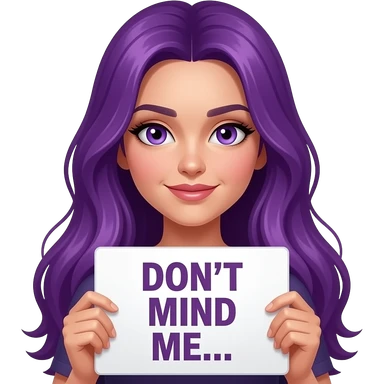 girl with long purple hair holding a DON'T MIND ME sign emoji
