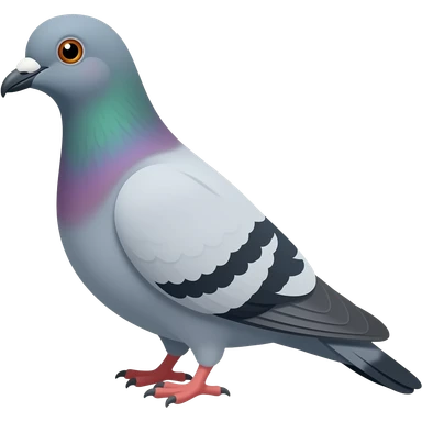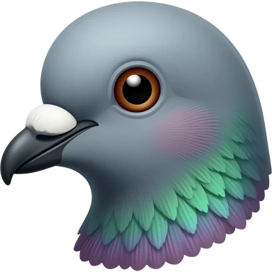 A pigeon with gray feathers and two dark gray stripes on eatch of his wings, a dark gray and yellow beak, and a purple and green chest. emoji