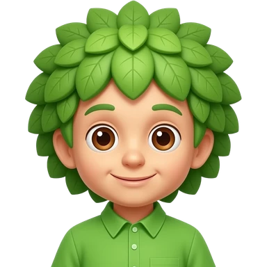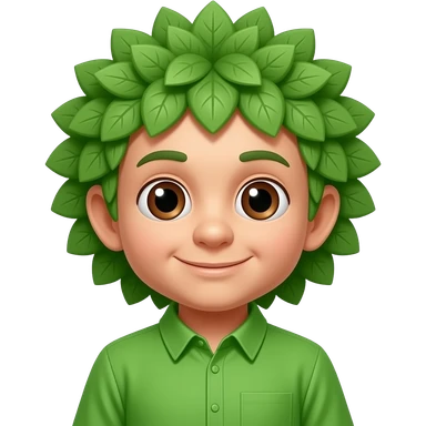 The Tree of Wisdom from The Wiggles with brown eyes, green leaves wig, green shirt emoji