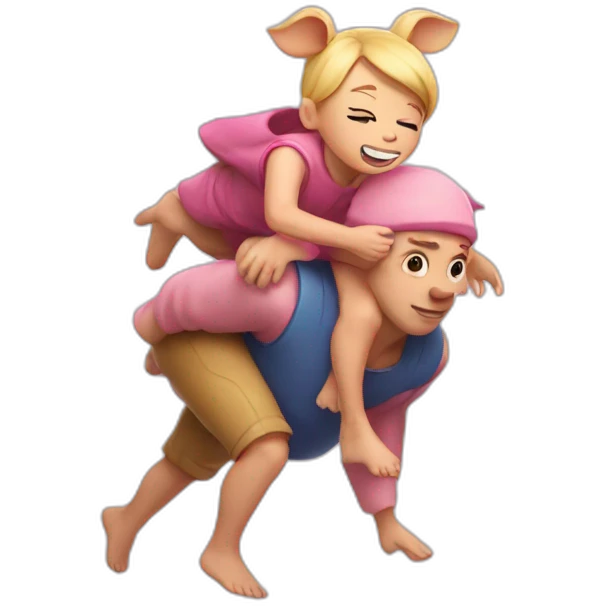 Hyper Realistic beautiful woman getting a piggy back off a handsome tattooed man laughing emoji