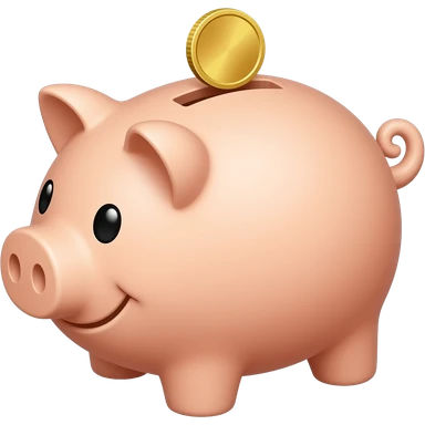 piggy bank with coin going into the top 45 degree angle with smile emoji