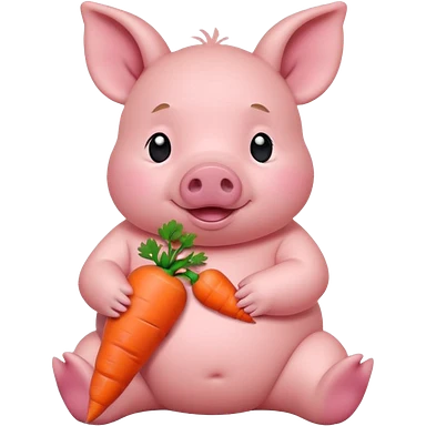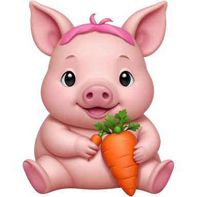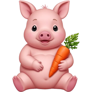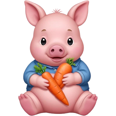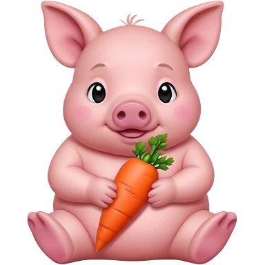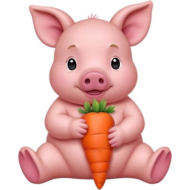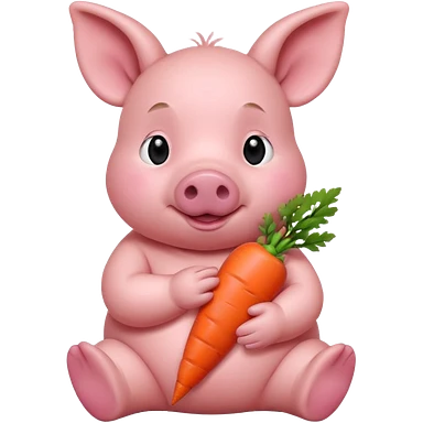 Baby Sitting Piglet – chubby piglet sitting down holding a toy carrot emoji
