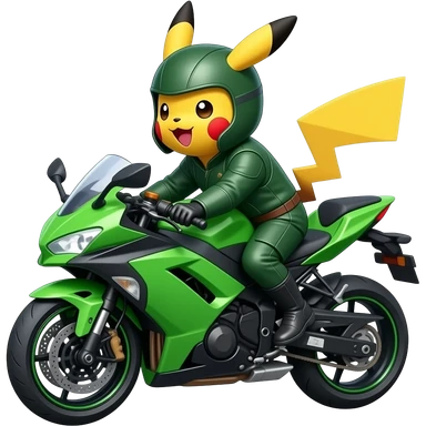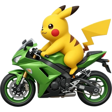 Pikachu riding green ninja mototcycle emoji