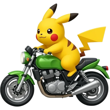 Pikachu riding completely green mototcycle emoji