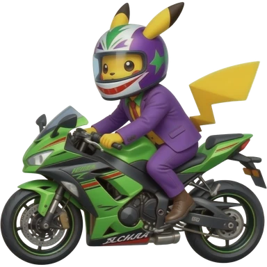 Pikachu riding green ninja mototcycle and joker helmete emoji
