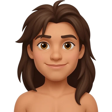 Tarzan with long brown hair, brown loincloth emoji
