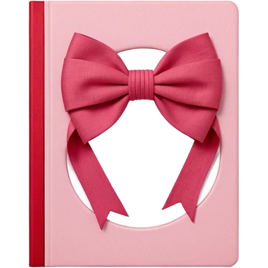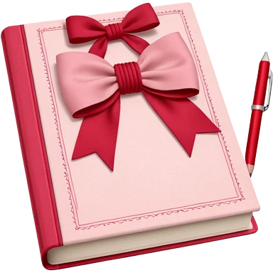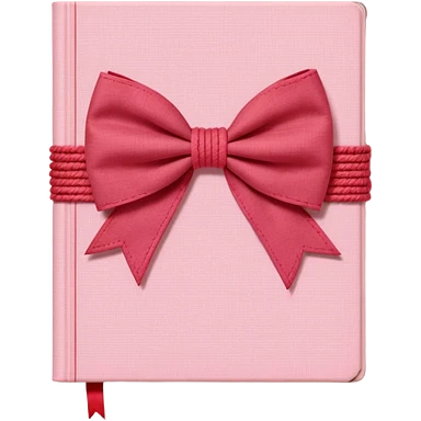 Junk journaling aesthetic book cover, tactile fabric textures, classic framing Red yarn bow as focal point, soft shadows, calm pastel pink backdrop Elegant, cozy, artistic, high-end print design emoji