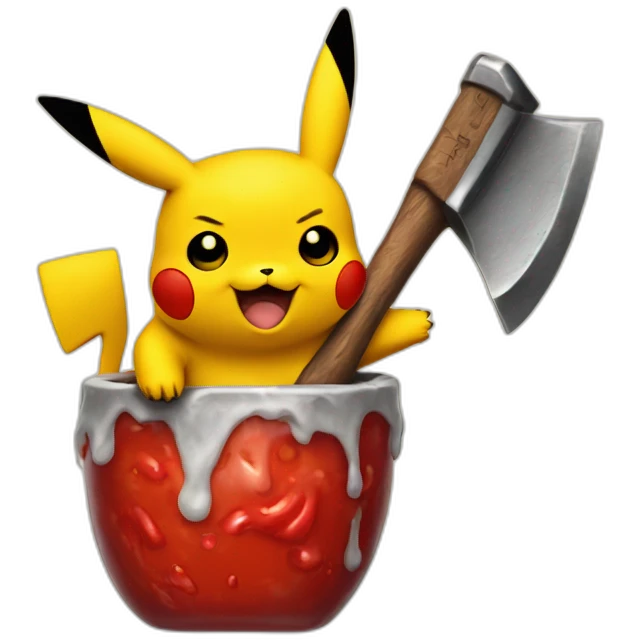 Pikachu with a ketchup stained axe emoji | AI Emoji Generator