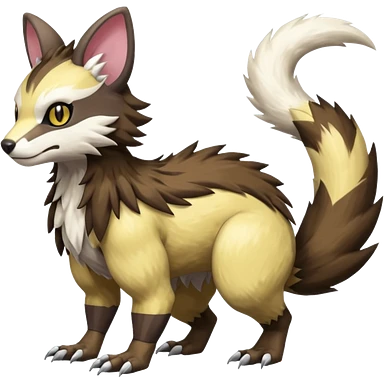 Trico-Sergal-Furret-Ferret-Wolverine-Vernid-fusion-Fakemon-animal-hybrid-creature, full body emoji