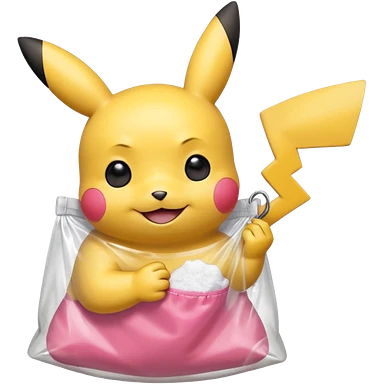 pikachu with transparent bag of white powder emoji | AI Emoji Generator