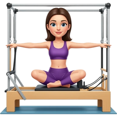 Pilates girl on pink reformer, brown hair, with crown emoji