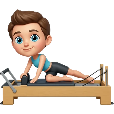 Pilates girl on pink reformer, brown hair, with crown emoji