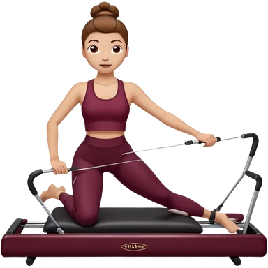 Girl with light skin tone - brown hair in a bun - and pilates outfit burgundy on a pilates reformer machine emoji