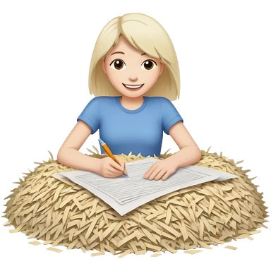 emoji where some is writing story and sitting near pile of shredded paper emoji
