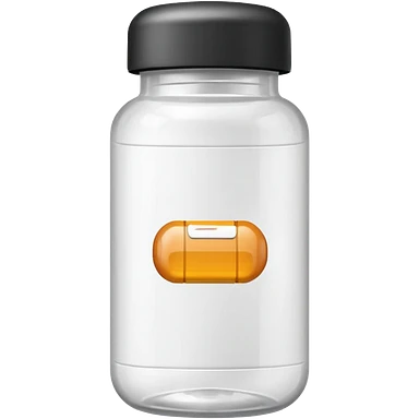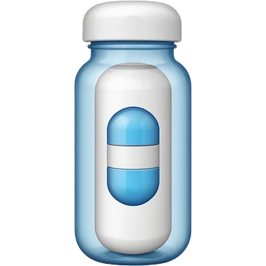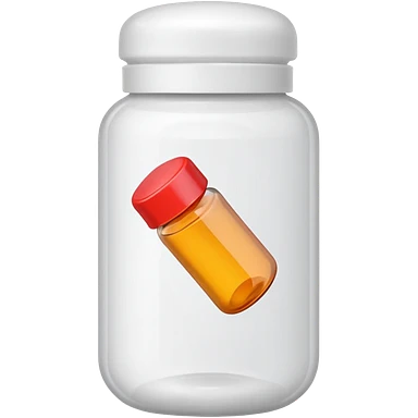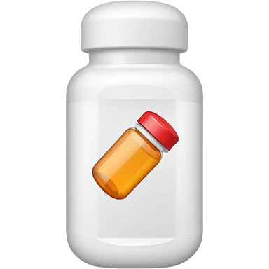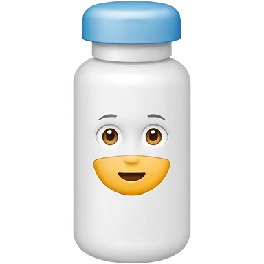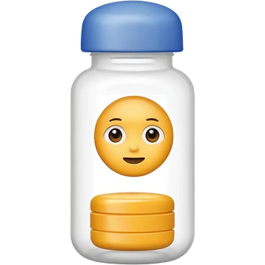 Can you create an emoji where it’s a basic yellow face emoji with wide crazy eyes and a small smile as well as blushed cheeks, and have it holding a pill near its mouth while a prescription bottle is next to it emoji