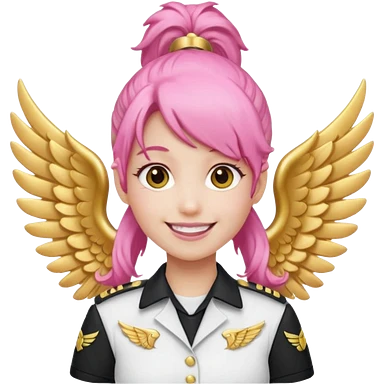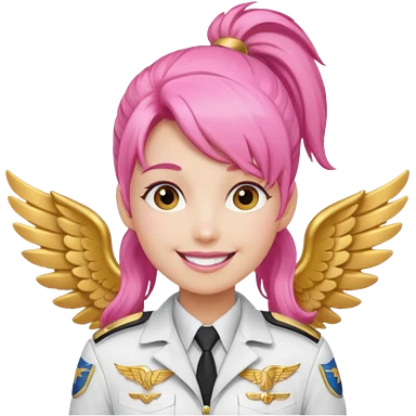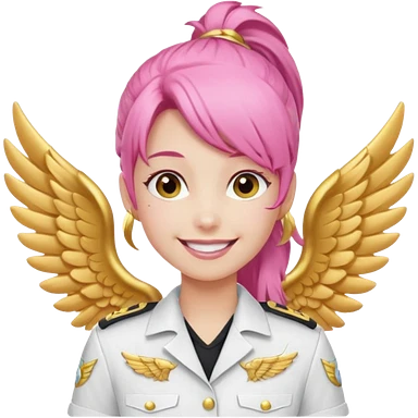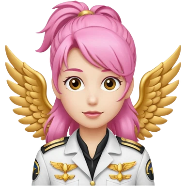 Commander Bloom – pink ponytail pilot in white uniform and gold wings emoji