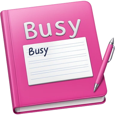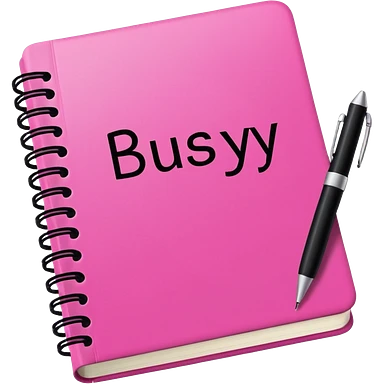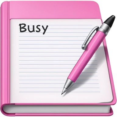 big pink book and note pen add on it the word BUSY in bold black emoji