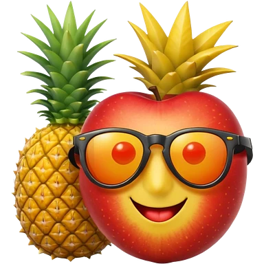 Fruit with Sunglasses, apple, lemon, orange, pineapple. emoji
