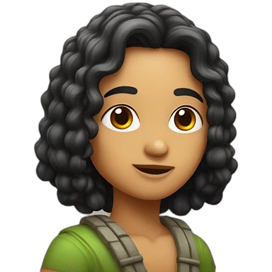 Chica con pelo castaño rizado longitud mediana. Con gafas beige. Sonriente y con vestido amarillo con dibujos de piñas. emoji