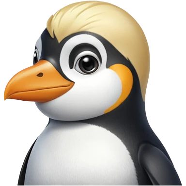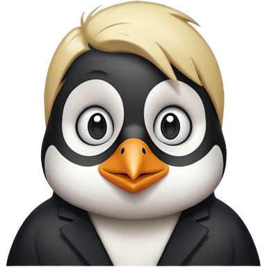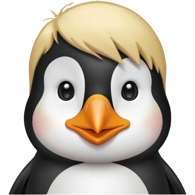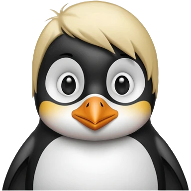 Pingüino con cabello rubio estilo cool emoji | AI Emoji Generator