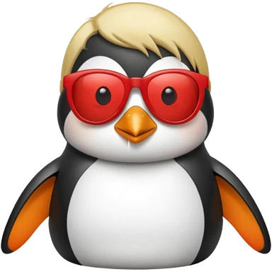 Pingüino con cabello rubio estilo cool con gafas de sol color rojo emoji