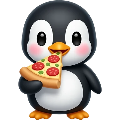 pingüino cuki y kawai comiendo una porción de pizza emoji